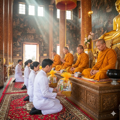 | 1 | ทำสังฆทาน | จัดของถวายเป็นสังฆทานแด่หมู่สงฆ์ ไม่เจาะจงรูปเดียว | เชื่อว่าจะได้บุญกว้างไกล ส่งผลทั้งชาตินี้และชาติหน้า เกิดในตระกูลดี มีทรัพย์สมบัติเพียงพอ ชีวิตไม่ค่อยขาดแคลน และมักห่างไกลโรคภัยเบียดเบียน |