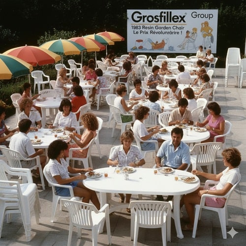 Grosfillex Group 1983 เปิดตัว Resin Garden Chair เวอร์ชันตลาดมวลชนอย่างแท้จริง บุกตลาดเชิงพาณิชย์ ทำให้แพร่หลายไปทั่วโลก