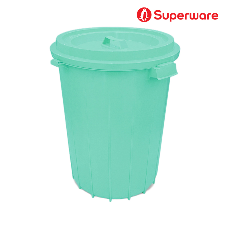 M-35 สีเขียวพาสเทล ถังน้ำพลาสติก แบบกลมมีฝาปิดล็อค 16 แกลลอน (60 ลิตร)