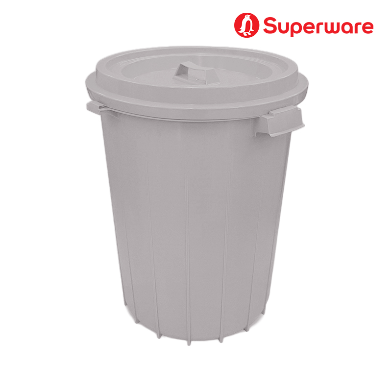 M-35 สีเทา ถังน้ำพลาสติก แบบกลมมีฝาปิดล็อค 16 แกลลอน (60 ลิตร)
