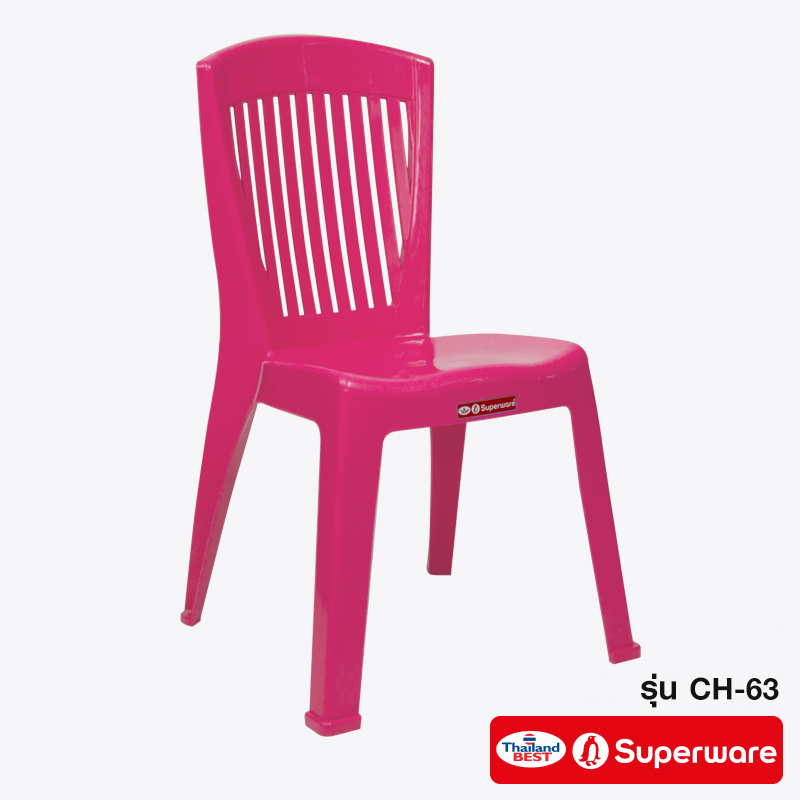 CH-63 ลายตรงสีชมพู เก้าอี้พลาสติก เก้าอี้สนาม เก้าอี้มีพนักพิง
