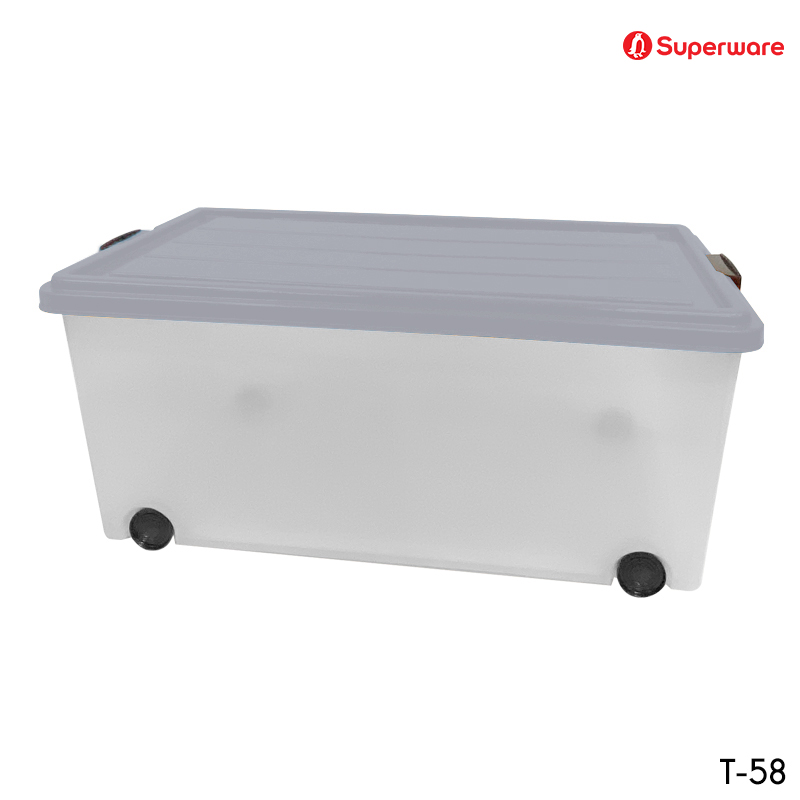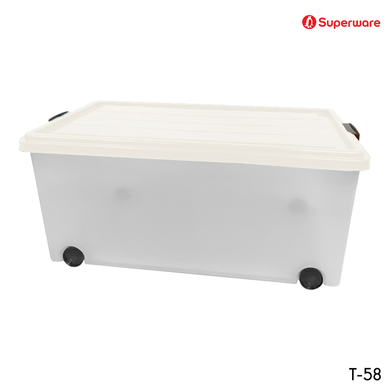 T-58 ฝาสีขาว กล่องใส่ของอเนกปรสงค์พร้อมฝาล็อค มีล้อเลื่อน แบบเตี้ย