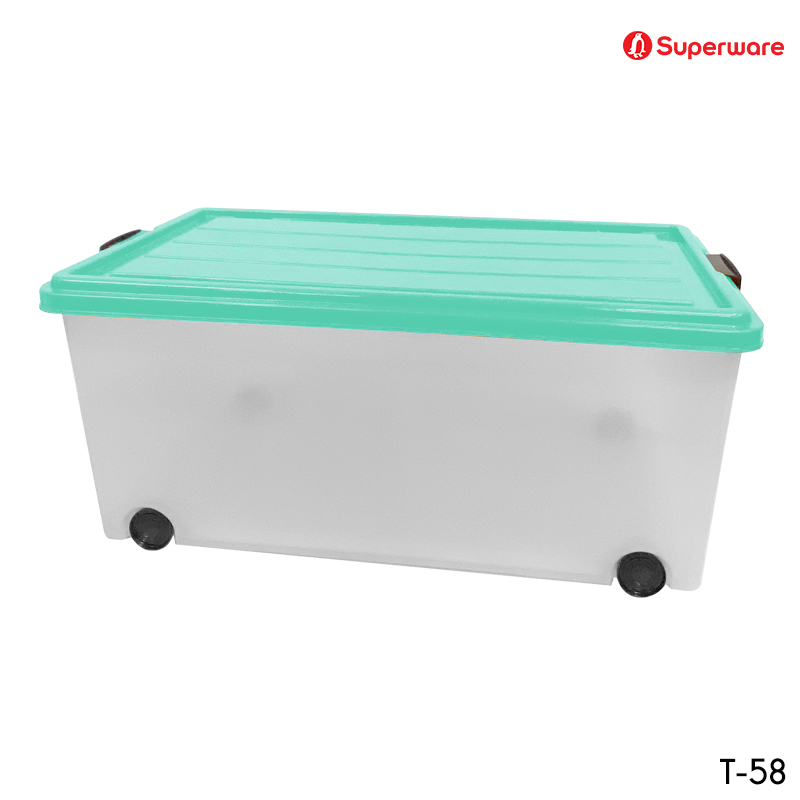 T-58 ฝาสีเขียวพาสเทล กล่องใส่ของอเนกปรสงค์พร้อมฝาล็อค มีล้อเลื่อน แบบสูง