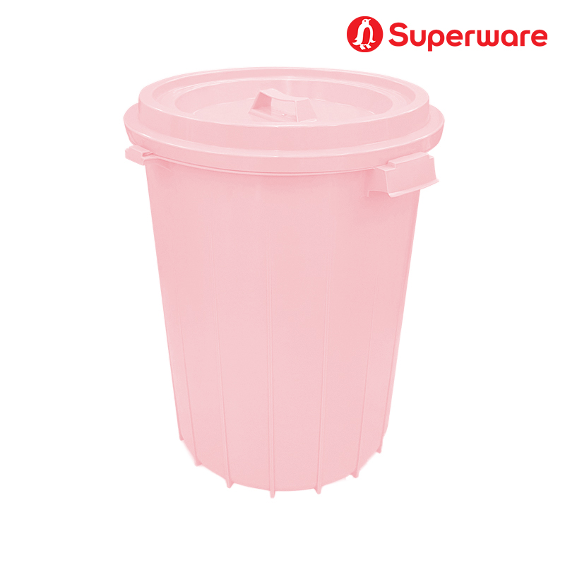 M-35 สีชมพูพาสเทล ถังน้ำพลาสติก แบบกลมมีฝาปิดล็อค 16 แกลลอน (60 ลิตร)