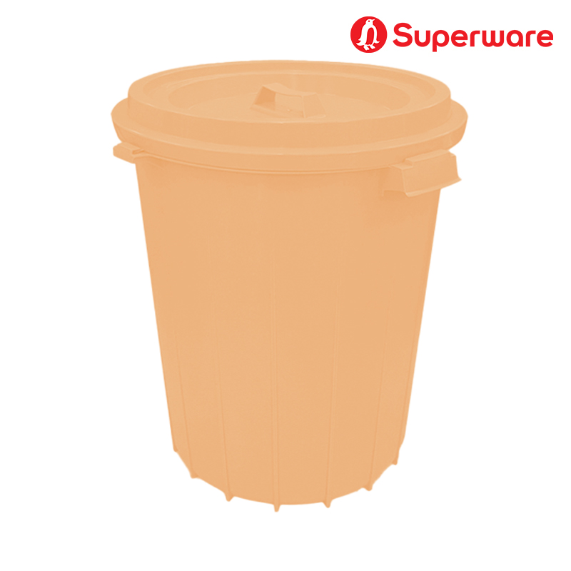 M-35 สีส้มพาสเทล ถังน้ำพลาสติก แบบกลมมีฝาปิดล็อค 16 แกลลอน (60 ลิตร)